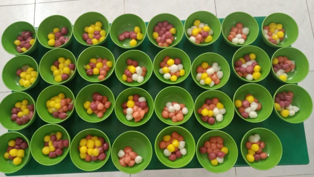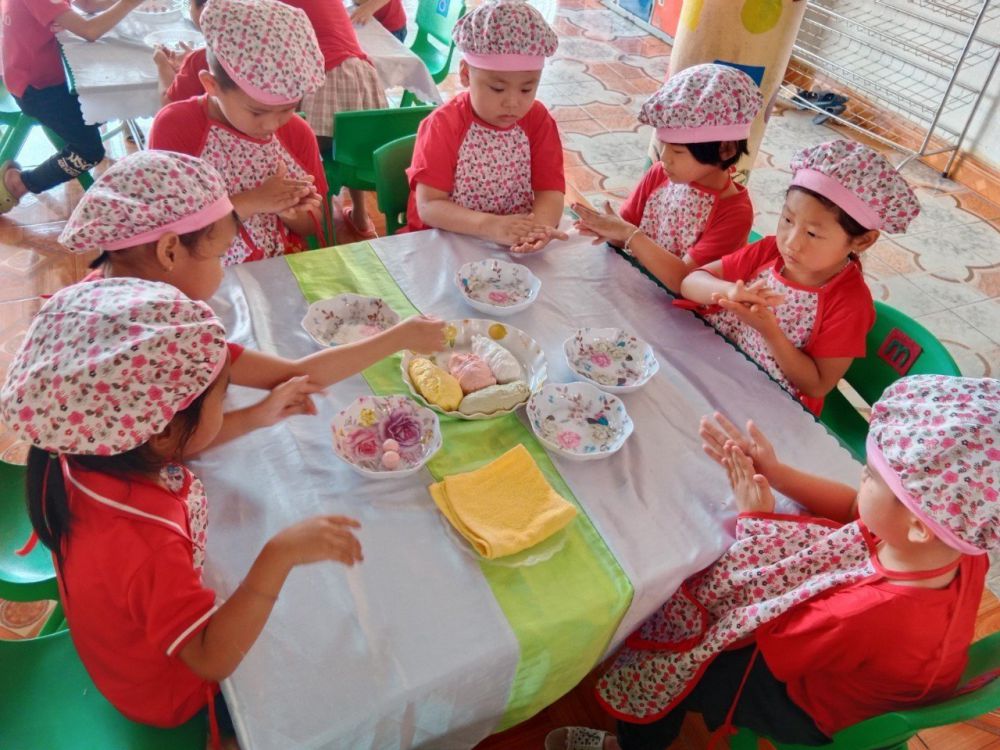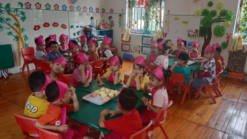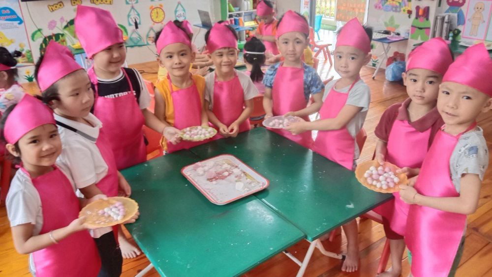 Hôm nay, cô và trò trường mầm non Việt Vinh cũng háo hức chuẩn bị những nguyên liệu để làm ra những viên bánh trôi xinh xắn. Với mùi thơm phức của bột nếp với hiều màu sắc từ lá cẩm, đường phên, không khí dường như trở nên sôi động và ý nghĩa hơn.