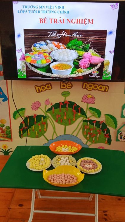 Dưới đây là một số hình ảnh của cô và trò trong hoạt động trải nghiệm “Bé vui trải nghiệm Tết Hàn Thực”