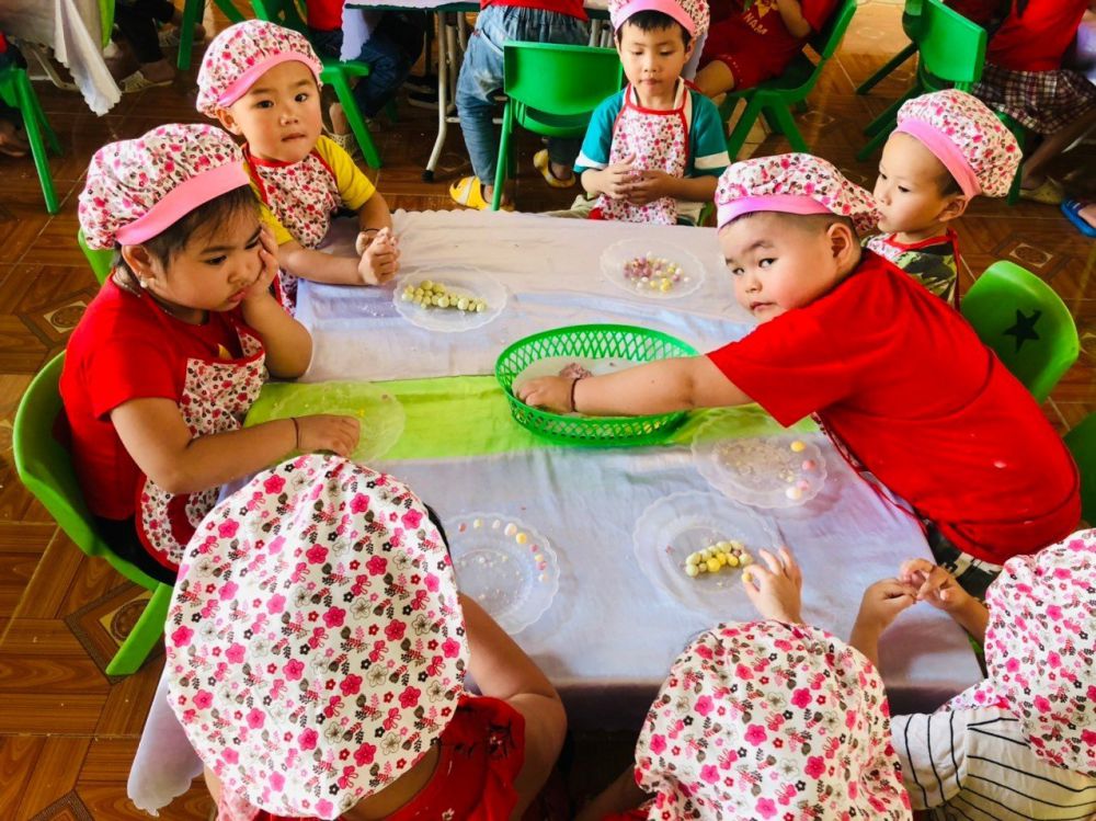Được sự hướng dẫn và giúp đỡ của các cô giáo, các con được tham gia vào những việc của “người lớn”: nhào bột, nặn bánh. Đó dường như là một điều hết sức mới mẻ, thú vị và ý nghĩa đối với các bạn nhỏ còn ngồi trên ghế trường mầm non. Các con tham gia vào hoạt động trải nghiệm với niềm vui phấn khởi, hứng thú và hào hứng. Sau khi nặn xong những viên bánh trôi nước tròn trịa, xinh xắn các con đều tỏ ra tự hào và thích thú. Cô giáo giúp các con luộc bánh. Và thành quả cuối cùng là những đĩa, bát bánh trôi nước thơm mùi bột nếp, mùi đường phên, mùi vừng. Các con được thưởng thức món bánh trôi nước mình tự làm ra vô cùng hấp dẫn trong niềm vui, niềm tự hào về bản thân.