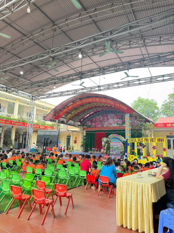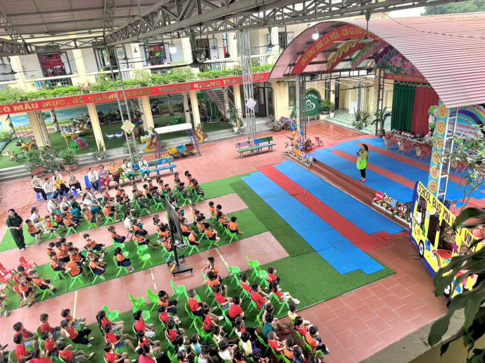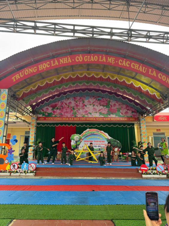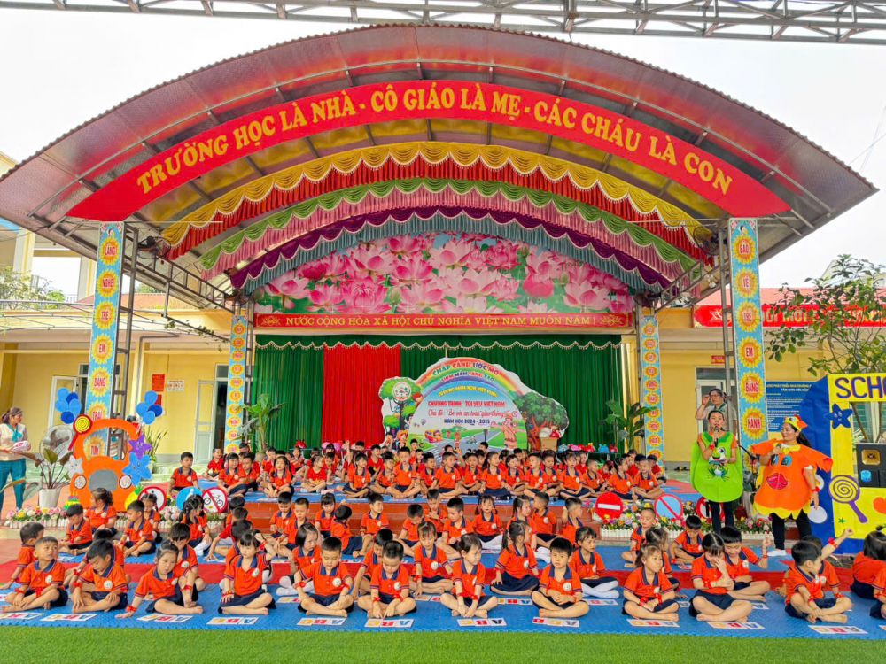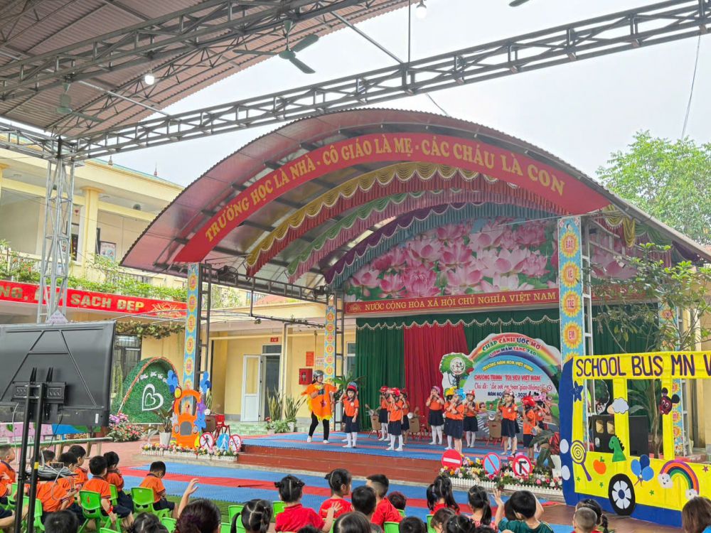 Mở đầu chương trình là chuỗi tiết mục văn nghệ đặc sắc, hấp dẫn, vui nhộn do các bé trong trường thể hiện. Những lời ca, điệu múa vui nhộn đã nhanh chóng khuấy động không khí và thu hút sự quan tâm, cổ vũ nồng nhiệt từ phụ huynh và toàn thể cán bộ giáo viên trong trường.