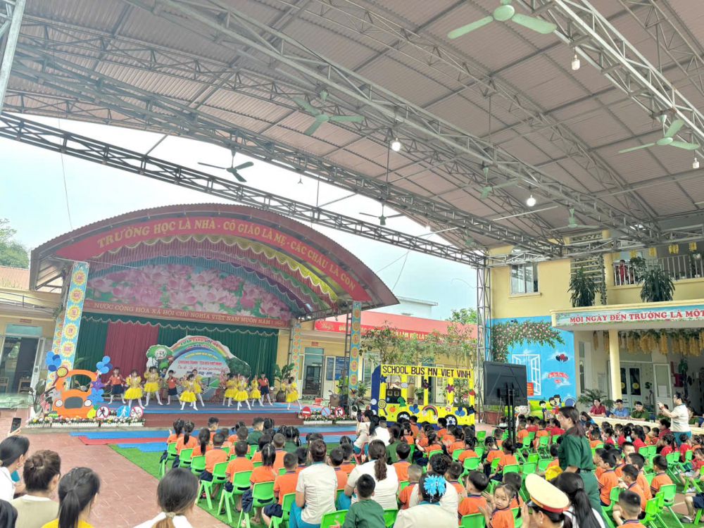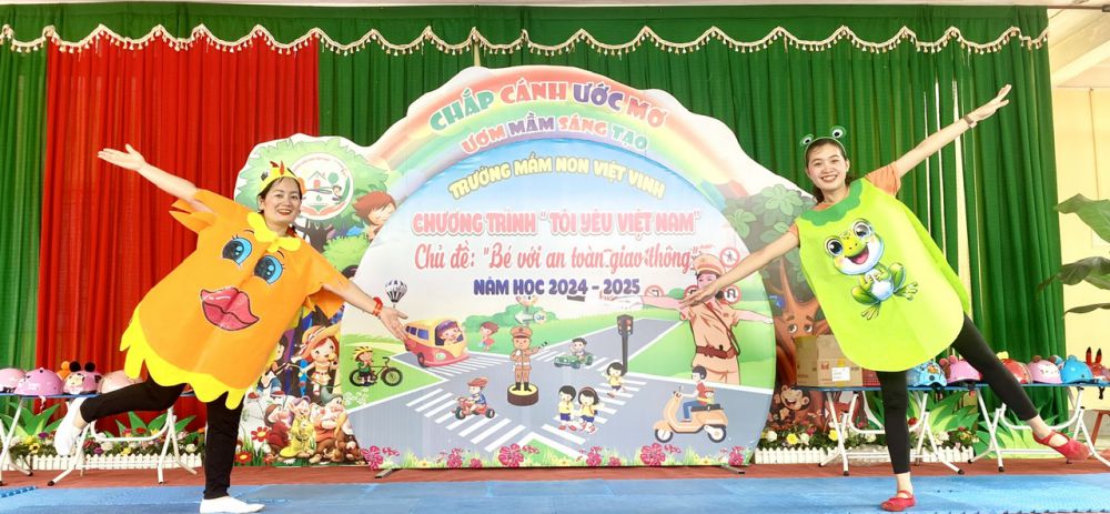 Đẩy mạnh hiệu quả phong trào thi đua “Xây dựng trường học thân thiện, học sinh tích cực”, nâng cao hiệu quả công tác giáo dục an toàn giao thông, tăng cường phối hợp giữa nhà trường – gia đình – xã hội cũng như tạo sân chơi lành mạnh, bổ ích cho trẻ, giúp trẻ thể hiện tài năng, rèn luyện trí tuệ, giao tiếp tự tin và phát triển toàn diện thông qua hoạt động học tập, vui chơi và trải nghiệm. Trường Mầm non Việt Vinh đã tổ chức thành công chương trình “Tôi yêu Việt Nam” với chủ đề “Bé với an toàn giao thông” – Sân chơi bổ ích giúp trẻ mầm non hình thành kỹ năng và hành vi văn hóa khi tham gia giao thông.