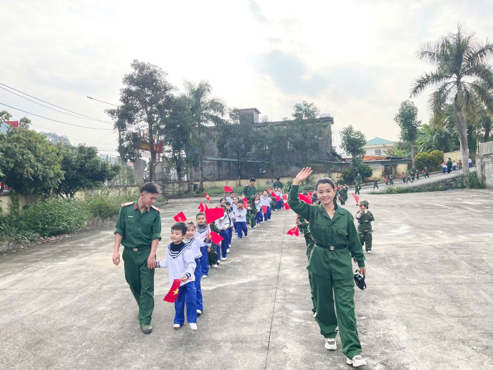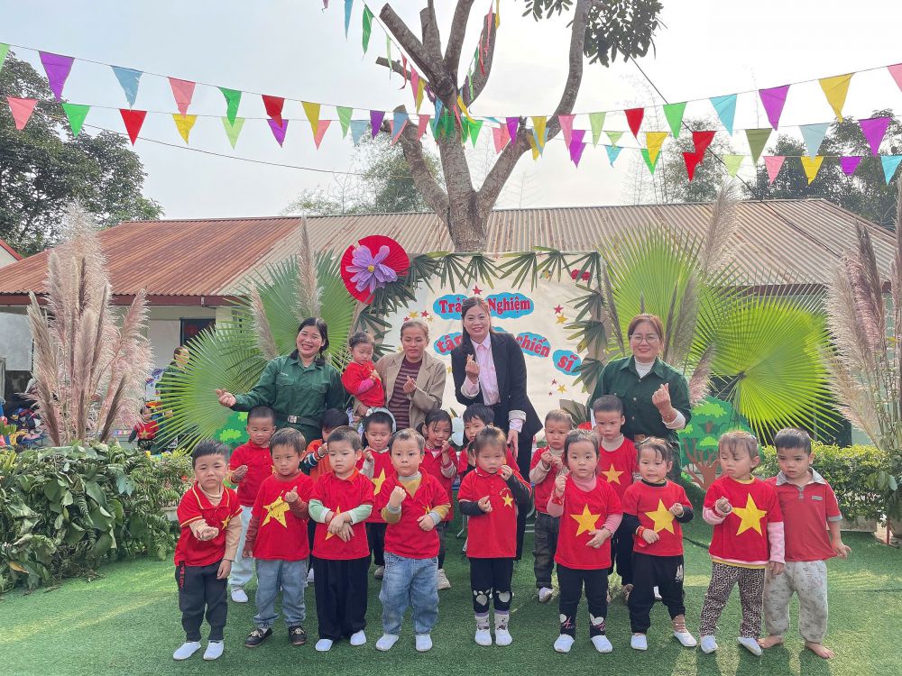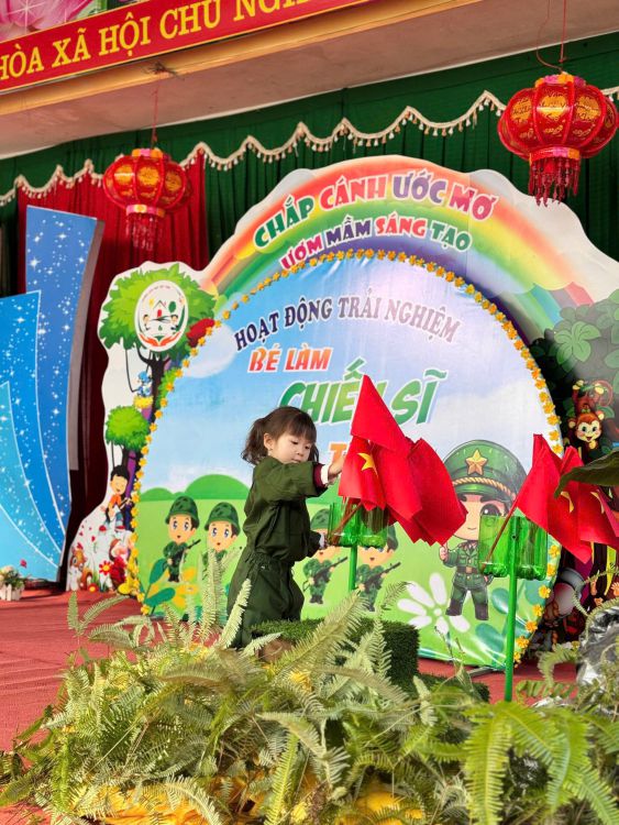 Sau đây là một số hình ảnh của hoạt động trải nghiệm "Bé làm chiến sĩ tí hon" của trường mầm non Việt Vinh