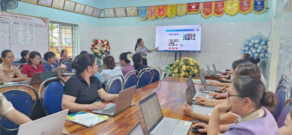 Qua buổi tập huấn, đội ngũ cán bộ, giáo viên, nhân viên của trường đã được cung cấp nhiều kiến thức bổ ích, đồng thời thực hành trải nghiệm các công cụ AI trong thiết kế giáo án, tạo tranh minh họa, video và các tài nguyên dạy học sinh động. Đây là bước khởi đầu quan trọng, mở ra cơ hội ứng dụng công nghệ mới vào hoạt động quản lý và giảng dạy trong nhà trường.