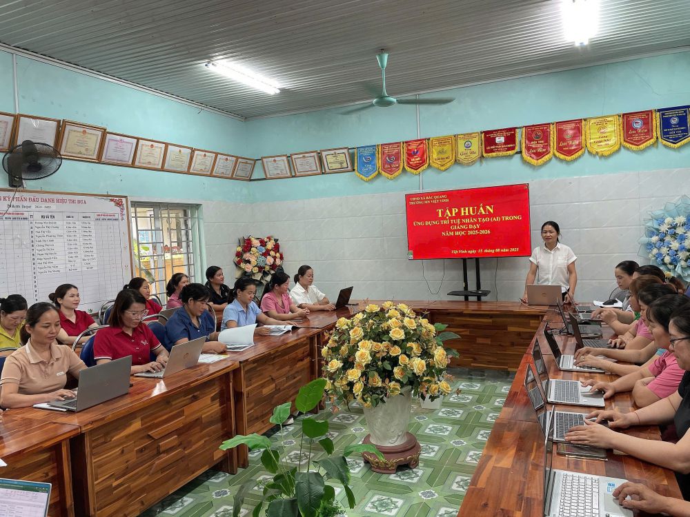 Thực hiện nhiệm vụ năm học 2025 – 2026, nhằm đẩy mạnh đổi mới phương pháp dạy học và quản lý giáo dục, trường Mầm non Việt Vinh đã tổ chức tập huấn chuyên đề “Ứng dụng trí tuệ nhân tạo (AI) trong giảng dạy” cho cán bộ, giáo viên, nhân viên trong nhà trường.