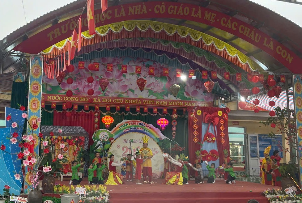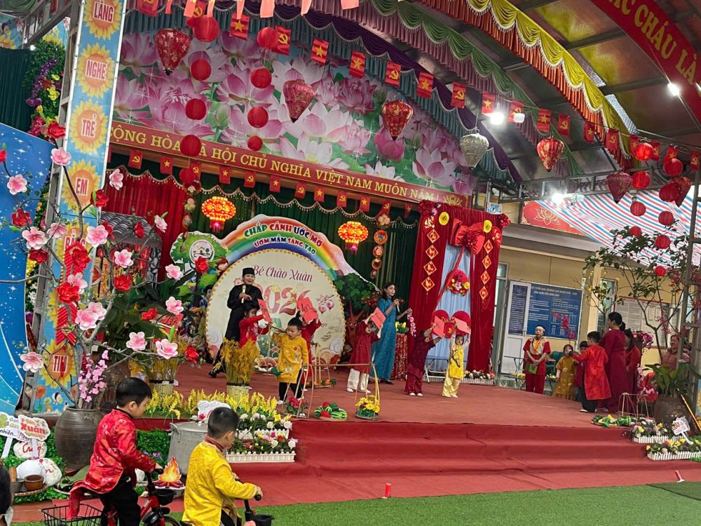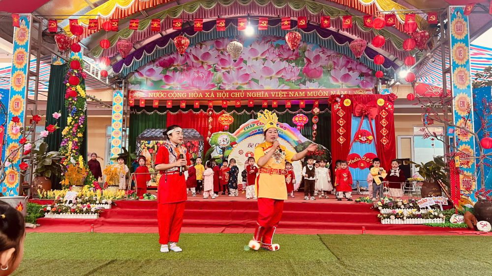 Những tiết mục văn nghệ của cô và trò khối nhà trẻ tiếp nối nhẹ nhàng, trong trẻo, phản chiếu sự hồn nhiên và niềm vui khi Tết đang đến rất gần.