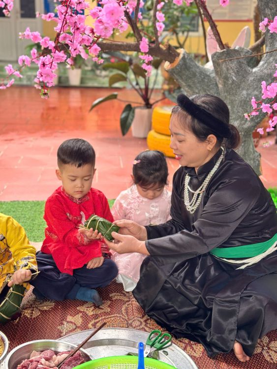 Không chỉ dừng lại ở các hoạt động trong chương trình, chuỗi hoạt động chào xuân đã diễn ra từ các ngày trước, các bé đã được tham gia trải nghiệm gói bánh chưng, cùng nhau cảm nhận hương vị Tết truyền thống qua từng thao tác quan sát và thực hành....