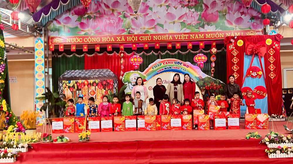Giữa không khí ấm áp ấy, nhà trường, hội phụ huynh và nhà sách Phương Thảo đã trao tặng những phần quà yêu thương đến các trẻ có hoàn cảnh khó khăn, để mùa Xuân không chỉ là niềm vui, mà còn là sự sẻ chia, yêu thương lan tỏa.