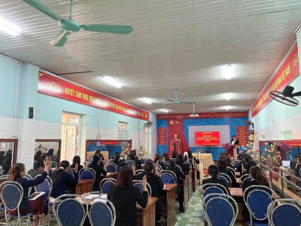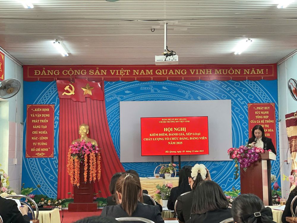 Chiều ngày 03/12/2025 Chi bộ Trường Mầm non Việt Vinh tổ chức Hội nghị "kiểm điểm, đánh giá, xếp loại chất lượng tổ chức Đảng, Đảng viên năm 2025" Với tổng số đảng viên: 33 đồng chí.