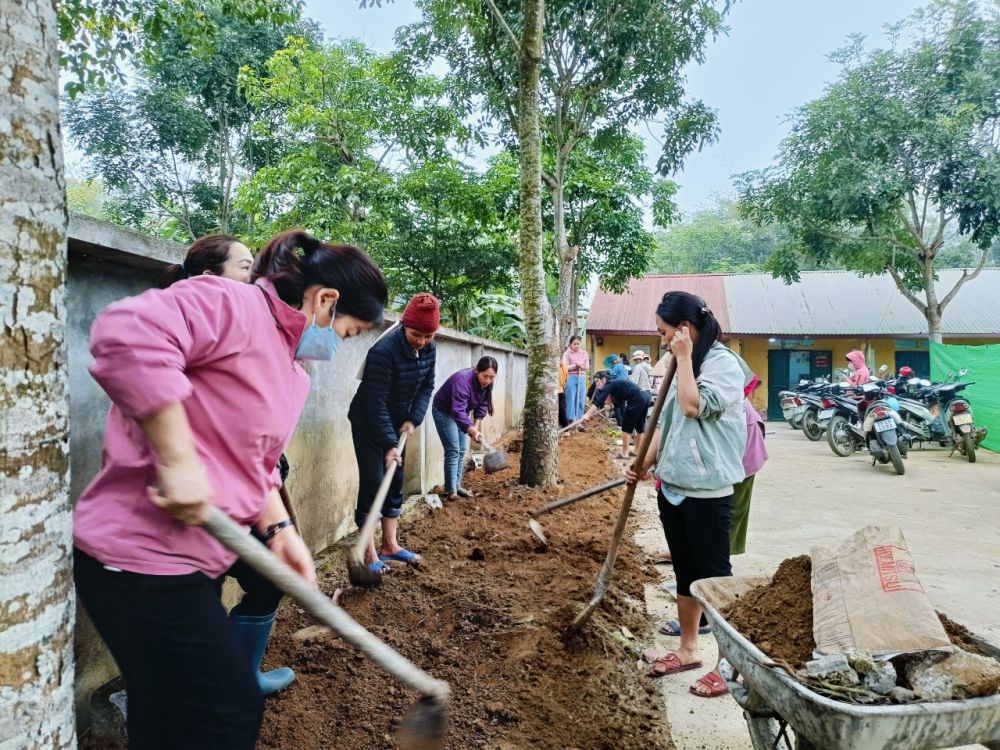 Buổi lao động đã nhận được sự ủng hộ của đông đảo bà con nhân dân, các bậc phụ huynh, các cô giáo chung tay xây dựng hàng cây xanh mát cho cổng điểm trường sạch đẹp