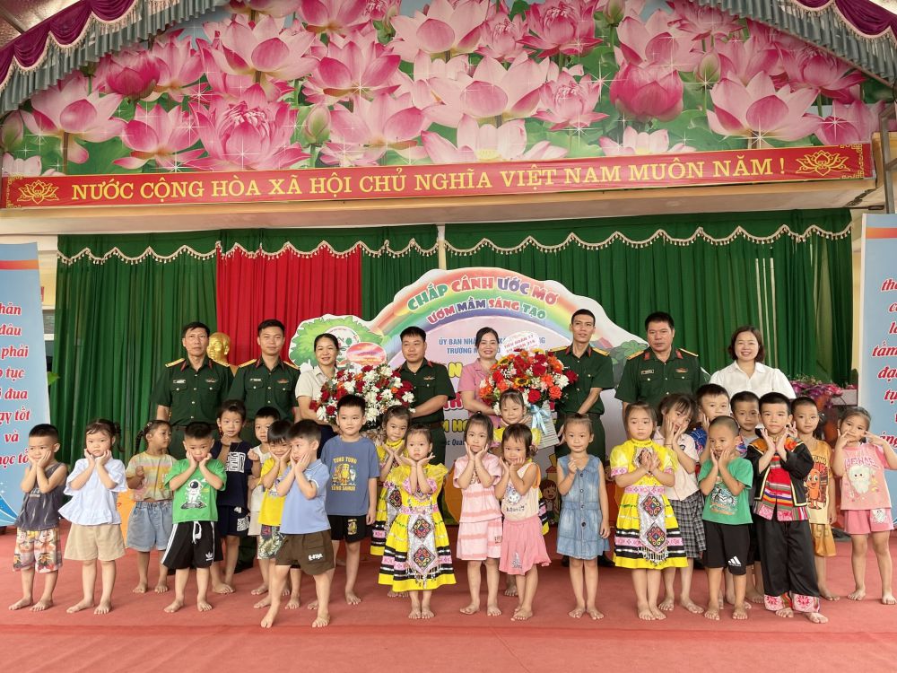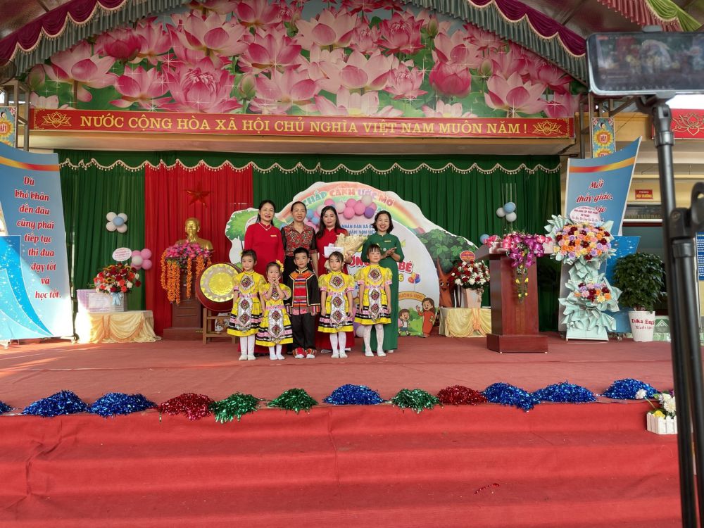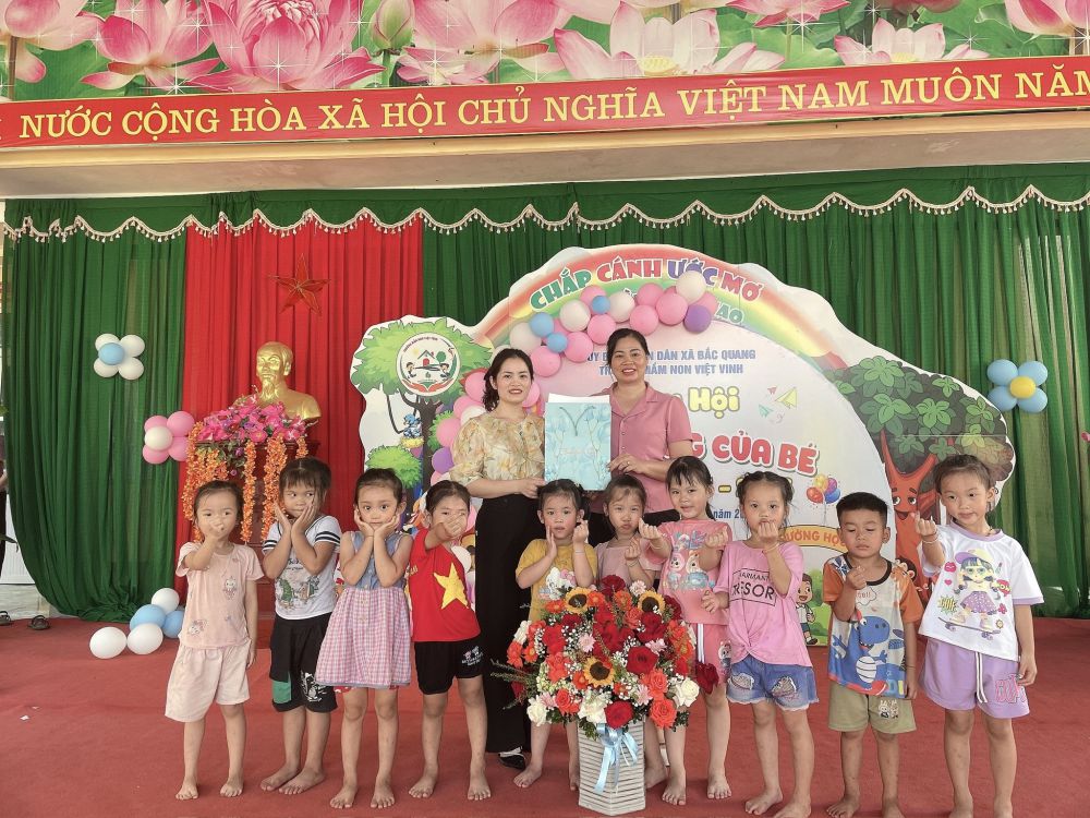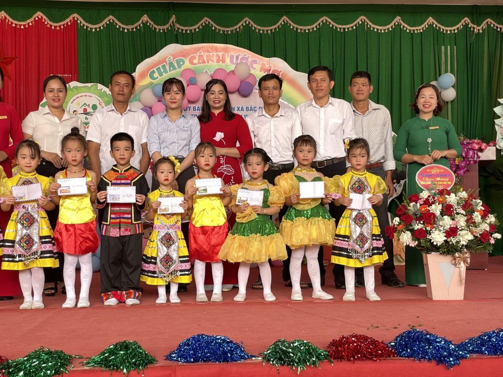 Buổi lễ vinh dự có sự tham dự của đ/c Hoàng Thị Sơn UVBCH đảng bộ xã, phó giám đốc trung tâm chính trị xã Bắc Quang, đại diện ngân hàng BIDV Hà Giang, chi nhánh Bắc Quang, cửa hàng VNPT Bắc Quang, các đồng chí đại diện Ban chi ủy, Ban quản lý, Ban công tác mặt trận 12 thôn, các đơn vị cung ứng thực phẩm, chất đốt, tập thể VCQL, GV, NV nhà trường, các bậc phụ huynh và các bé học sinh