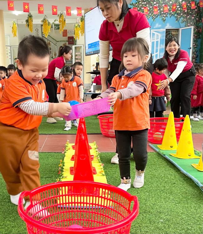 Đây là sân chơi vui nhộn giúp các bé khám phá 5 lĩnh vực phát triển kết hợp làm quen Tiếng Anh, phù hợp với lứa tuổi mầm non. Tiếng hò reo cổ vũ vang khắp sân trường khiến bầu không khí trở nên thật sôi động 🔊🎉.