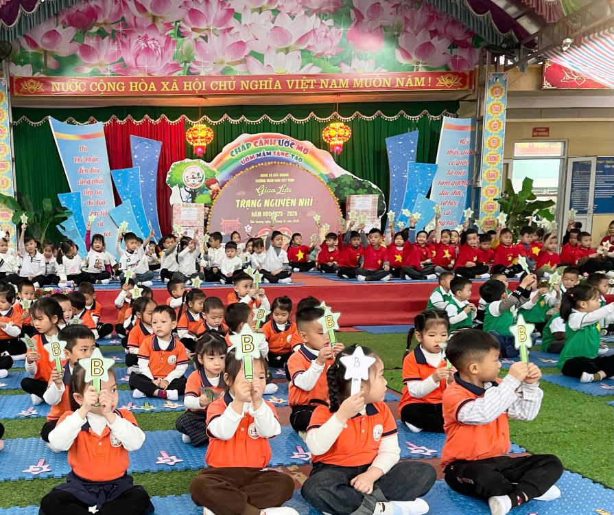 📚✨ Trong không khí sôi nổi của phong trào thi đua năm học 2025–2026, ngày 12/12/2025, Trường Mầm non Việt Vinh tổ chức cho các bé mẫu giáo giao lưu sân chơi đấu trí vui nhộn với chương trình “Trạng Nguyên Nhí” 👦👧🎓