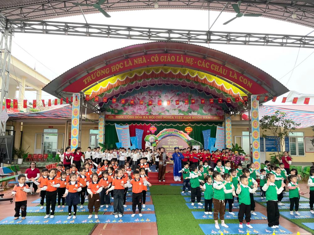 💃🕺 Tiết mục đồng diễn tập thể sôi động mở màn chương trình đã nhận được sự cổ vũ nồng nhiệt từ giáo viên và phụ huynh 👏🎶.