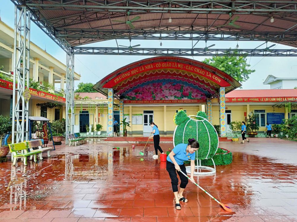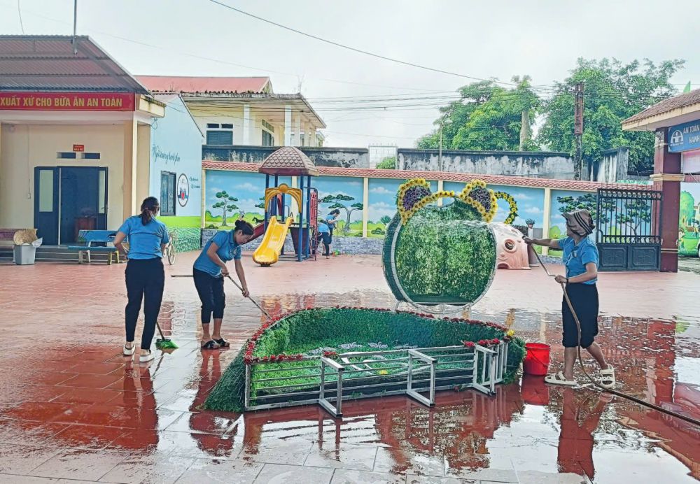 TRƯỜNG MẦM NON VIỆT VINH TỔ CHỨC LAO ĐỘNG VỆ SINH KHUÔN VIÊN TRƯỜNG LỚP ĐẦU NĂM HỌC 2024-2025